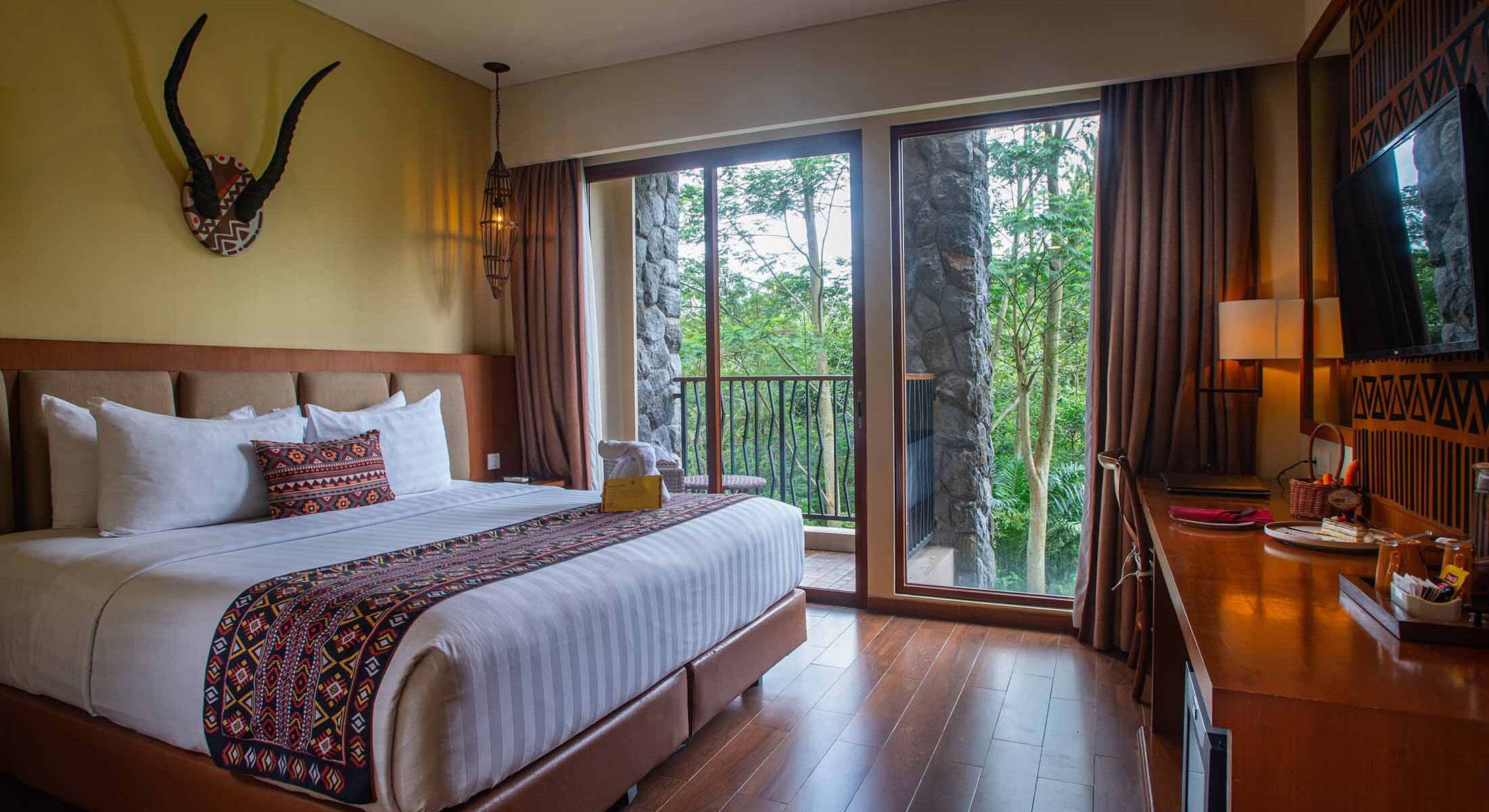 Connecting room options are available, making the Deluxe Hill View an ideal choice for families or groups looking for a comfortable safari resort experience near Taman Safari Prigen.